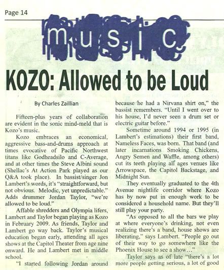 KOZO: Allowed to be Loud -- Olympia Power and Light, May 2011