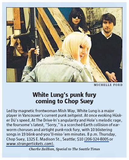 White Lung's punk fury coming to Chop Suey -- Seattle Times, November 2012